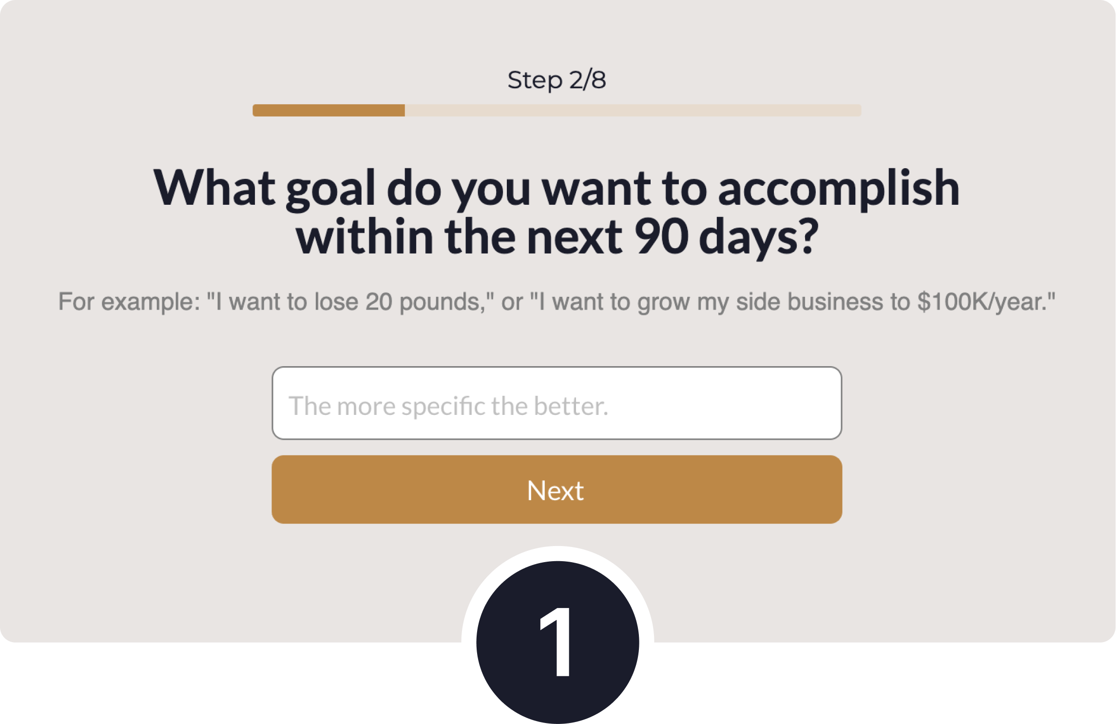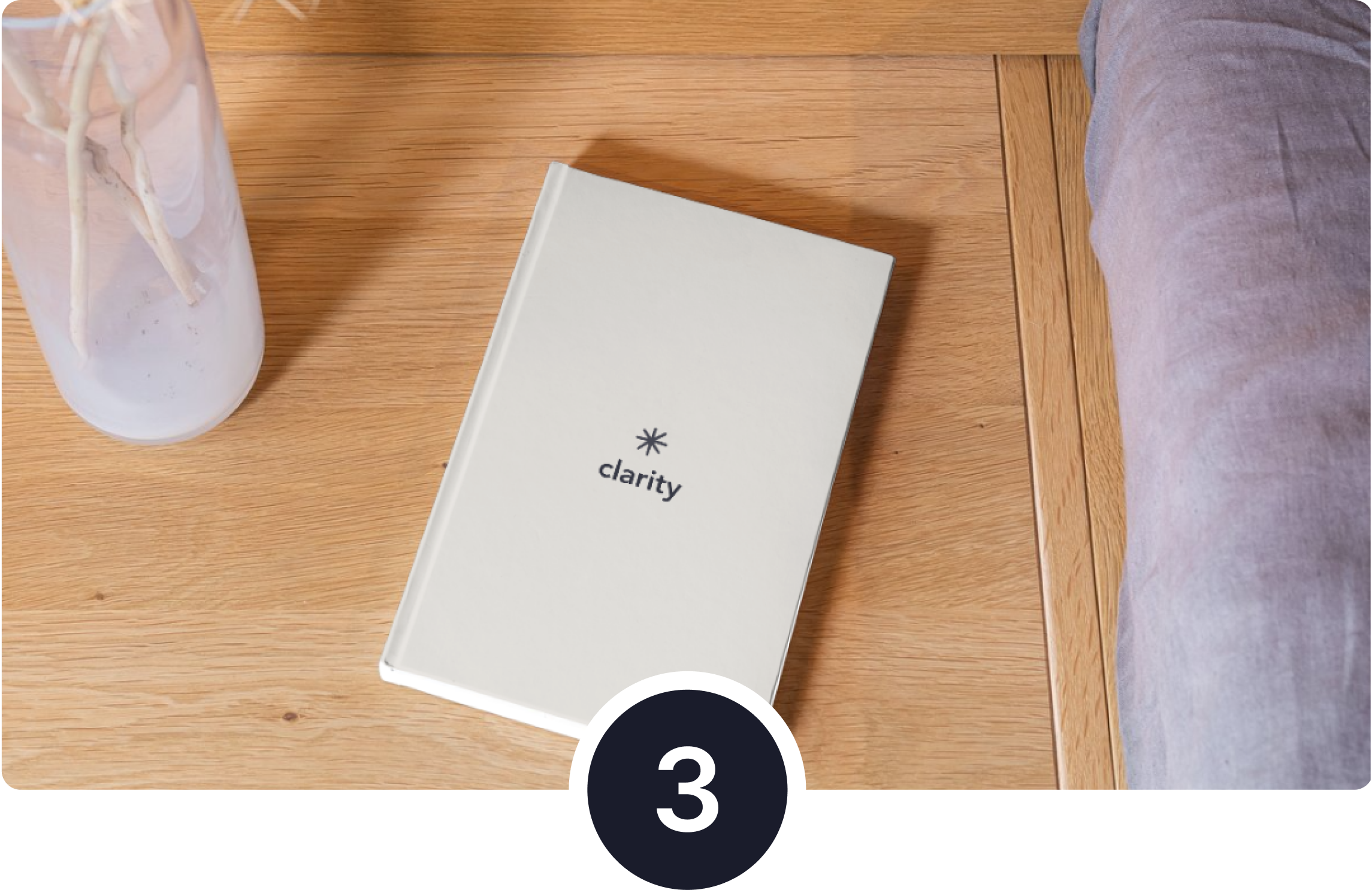 Clarity guides you through personalized prompts to understand your unique aspirations. Then, we turn your responses into a 90-day journal that keeps you focused, on track, and accountable every day.
